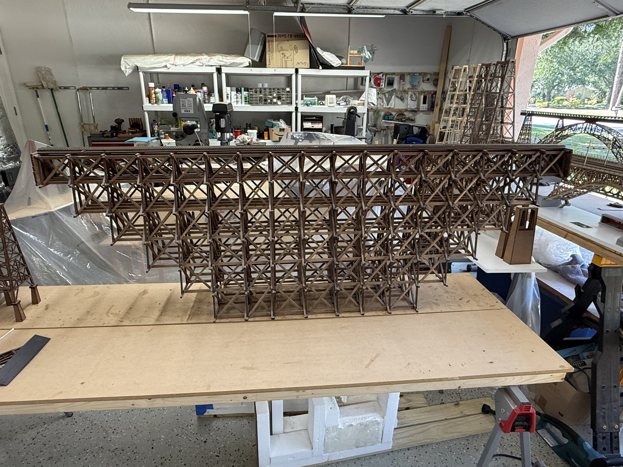 This trestle bridge is based on the Goat Canyon Trestle in San Diego County , California. The bridge was built in 1933 and has been inoperative since 2006. The dimensions of the HO Scale prototype is 70” x 11” x 24”. The bridge is constructed from lite plywood and hard balsa and is very sturdy. The original bridge is known for being the largest all-wood trestle in the world standing 186 feet tall and 750 feel long. This prototype is available for purchase at a substantial discount. Contact Hobby Laser Products for details. (941)730-2737.